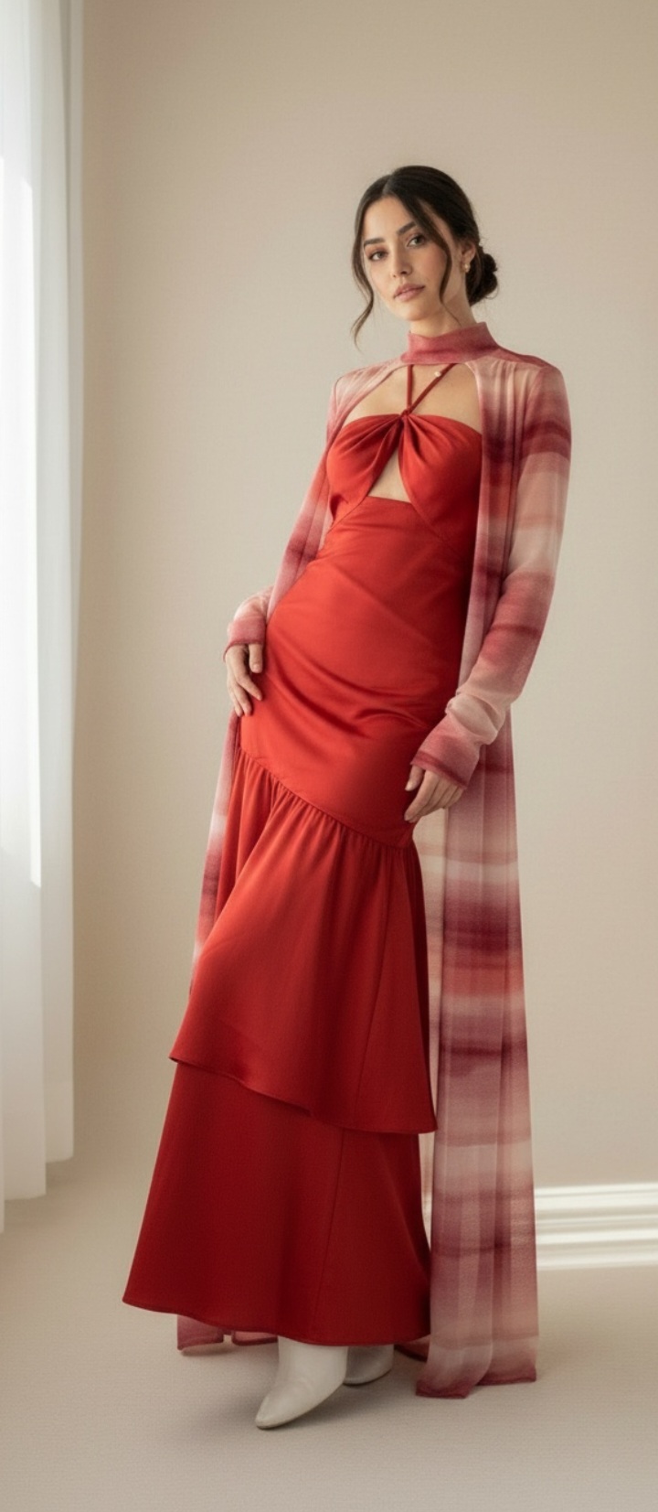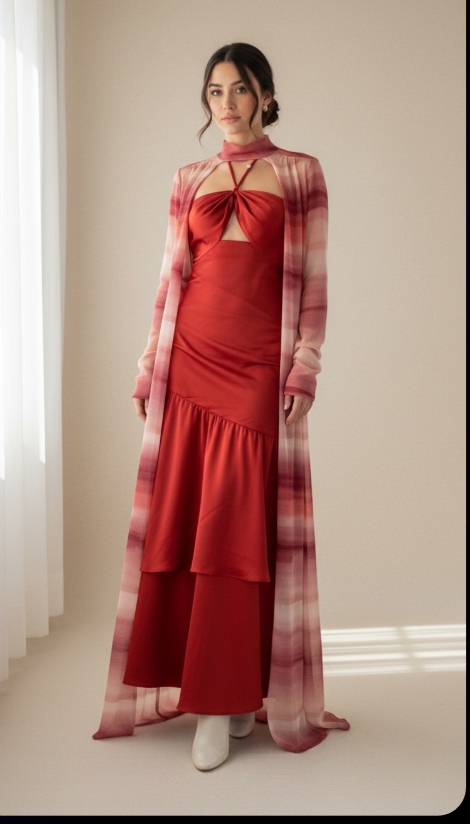 VESTIDO ESTRAPLES CON AMARRA AL CUELLO